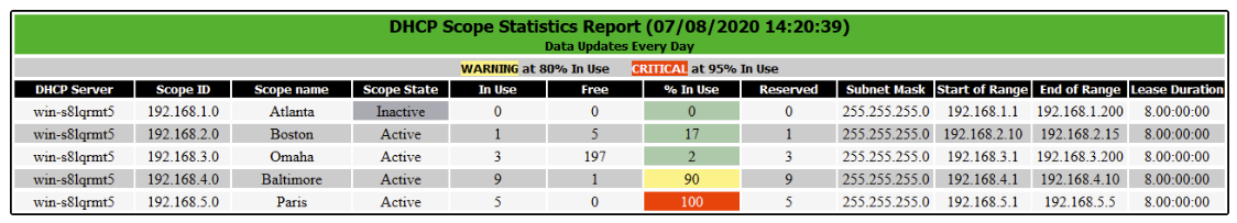 Six lines of code, dynamically built, easily can be adjusted for any reporting, not only for DHCP scopes.