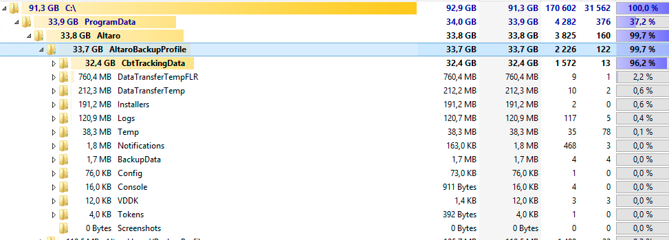 Delete the “CbtTrackingData” folder [C:\ProgramData\Altaro\AltaroBackupProfile\CbtTrackingData]