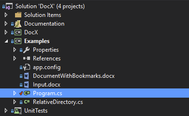 Above example is part of DocX Examples and can be found in DocX source package under **Examples \ Program.cs. **This example uses RelativeDirectory.cs class, as well an image. Both are required for the code sample to work and are included in the sources of DocX.