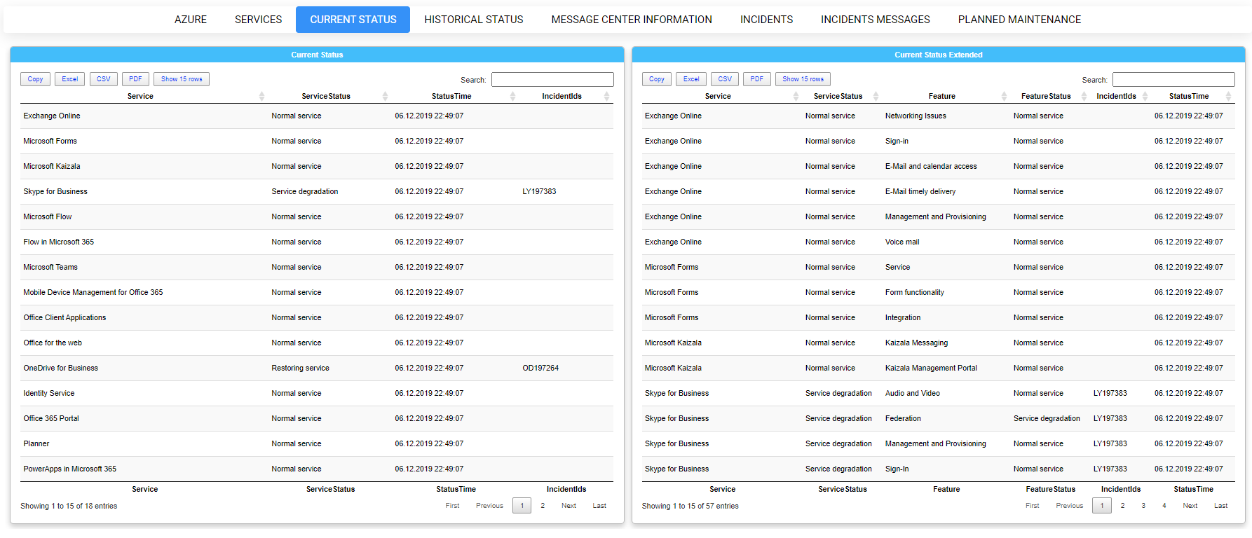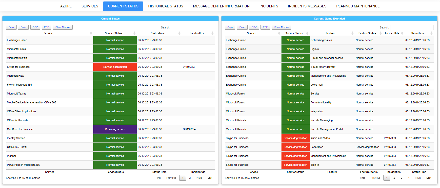 Some time ago I've wrote PowerShell way to get all information about Office 365 Service Health, and if you were thinking that I would try the same concept for Azure Services you were right. However, I failed. This is because Office 365 Health can be gathered using Microsoft Graph API, and Azure Health information, as far as I know, is not available in the form I wanted it. Azure Status is available as part of Azure Status website. Contrary to Office 365 health you don't have to login to your Office 365 tenant to read it.