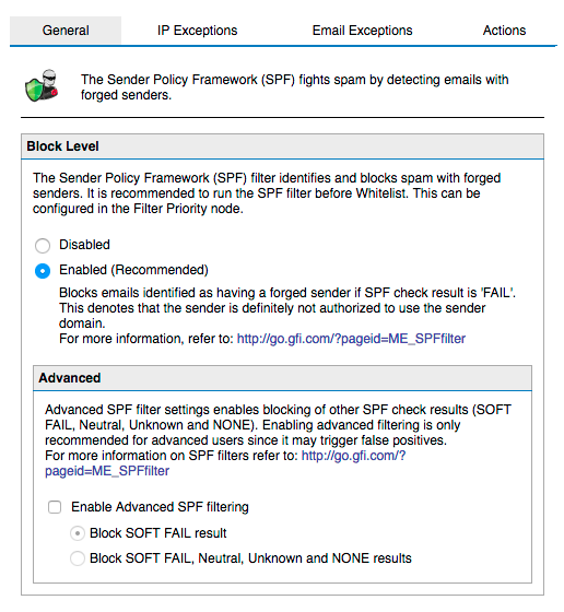 Does GFI Mail Essentials 20.1 support full SPF specification