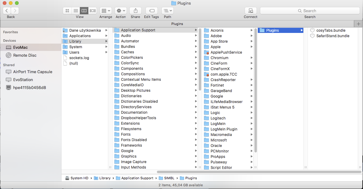 Library/Application** Support/SIMBL/Plugins**.You can find the path similar to the screenshot above. Just find it in Finder and follow the path. - Restart Safari.