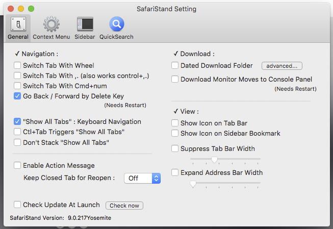 - Download and unpack plugin SafariStand (currently 9.0 released for **Mac OS X Yosemite **but works just as well on Mac OS X El Capitan)