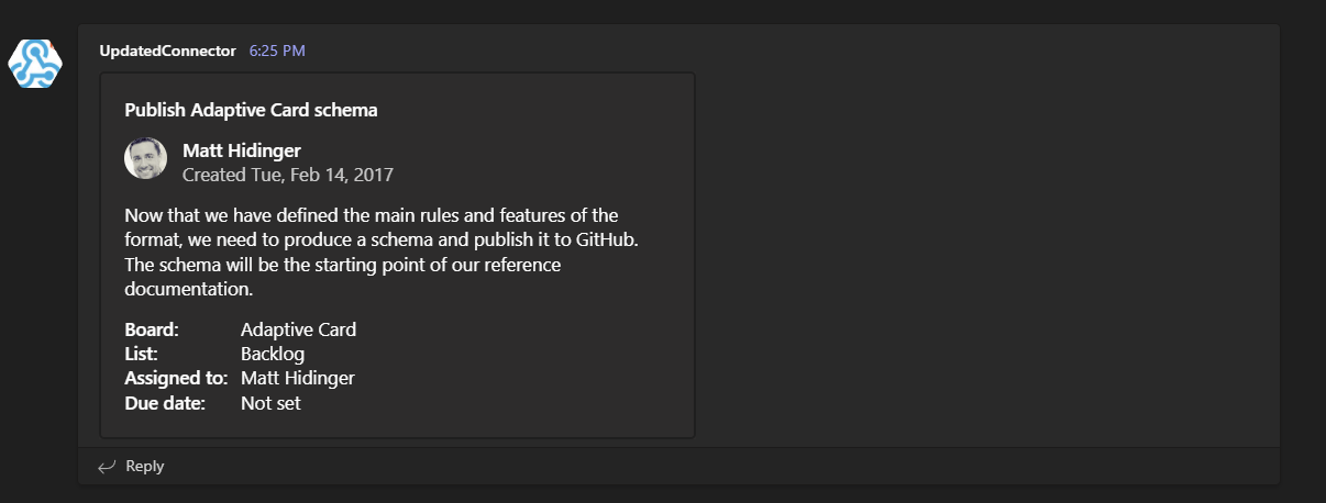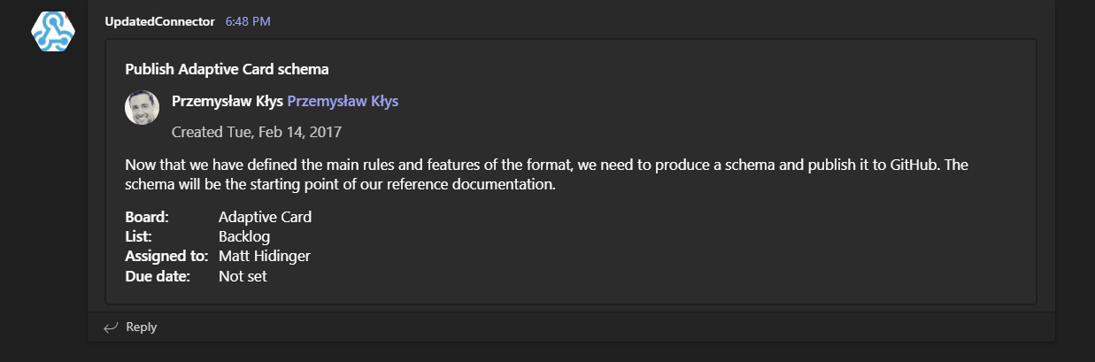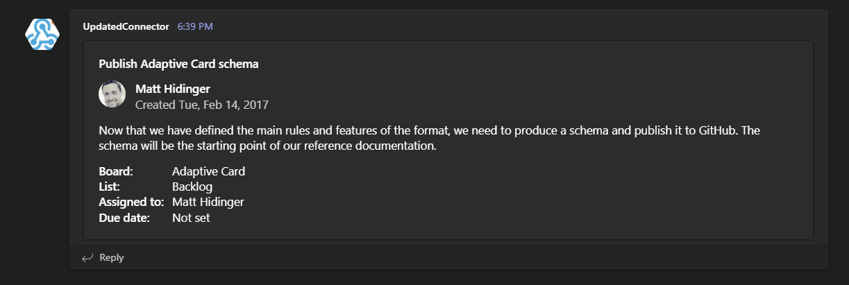 New-AdaptiveFact -Title 'Assigned to:' -Value 'Matt Hidinger'