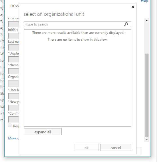 Microsoft Exchange – OU picker is empty when creating new user