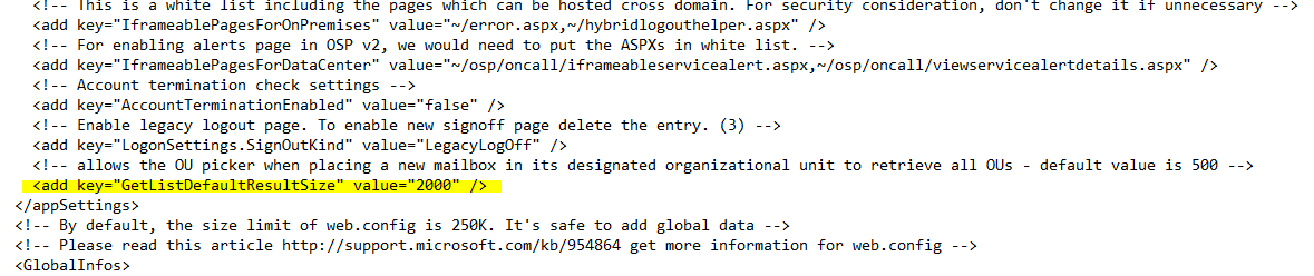 - Modify each servers web.config: **\\c$\Program Files\Microsoft\Exchange Server\V15\ClientAccess\ecp\web.config **by adding