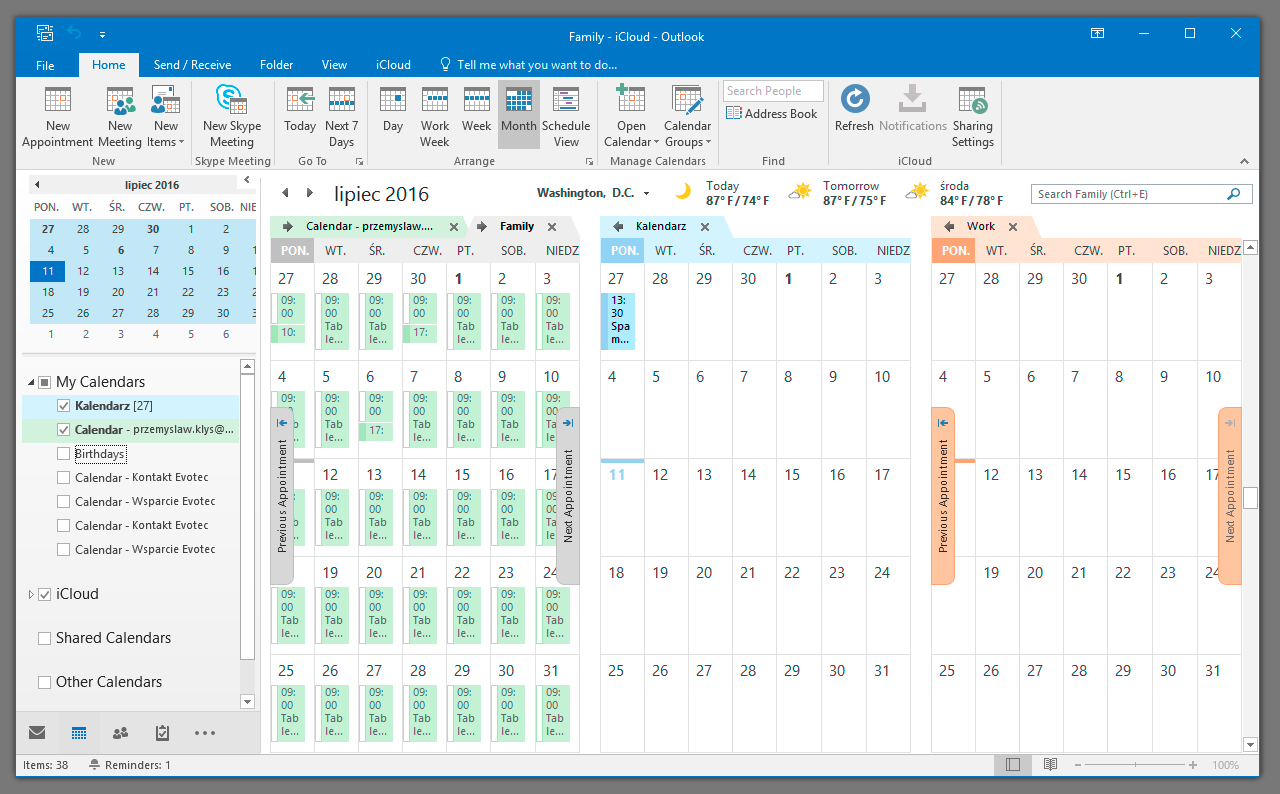 Now that we are done with emails being transferred to our second Exchange account we can copy other stuff. Same **Drag & Drop **approach is required for other types of objects stored in Office 365 such as tasks, calendar and contacts. While contacts and tasks are fairly straight forward calendar looks a bit more complicated on first sight. Usually calendar view looks similar to this.