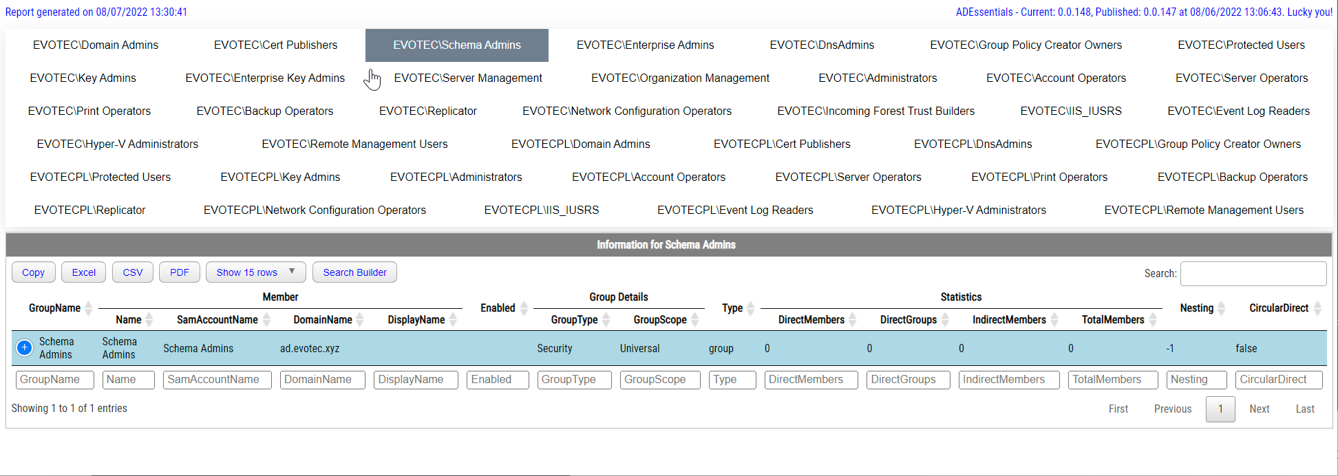 Remember that you can also pick and choose groups you want to display from the defined critical groups. Just in case you're not interested in the full scope of your Forest.