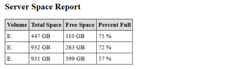 The article describes how you can send yourself this little table of disk data with some WMI query, some basic HTML and Send-MailMessage.
