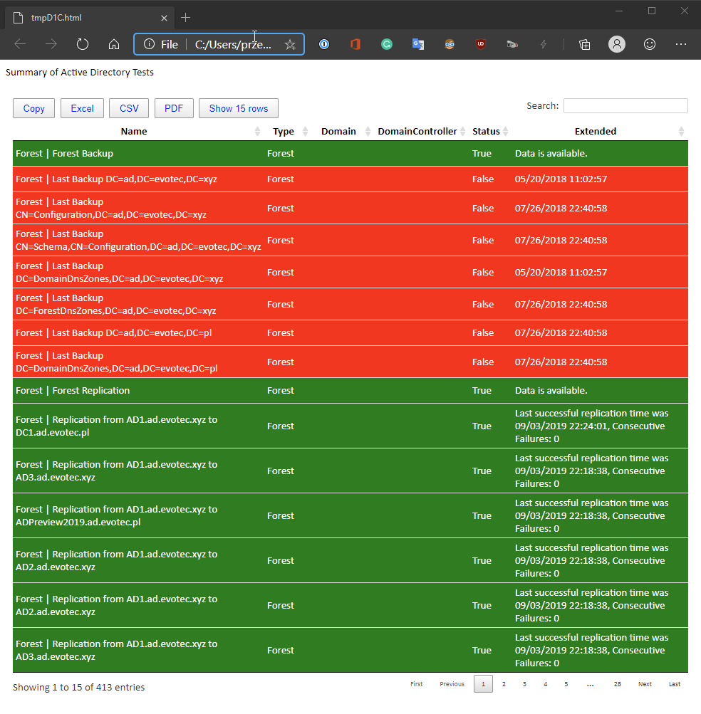 What I love about it, is that with one command Test-ADPester it delivered me the status of my Active Directory. Not a lot of it, but enough to tell whether my Active Directory is healthy or not, with virtually zero effort on my side.