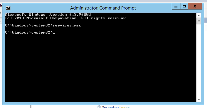 When it's done, close all windows that are open on Windows server and open up CMD with Run As Administrator permissions to start Services.msc.